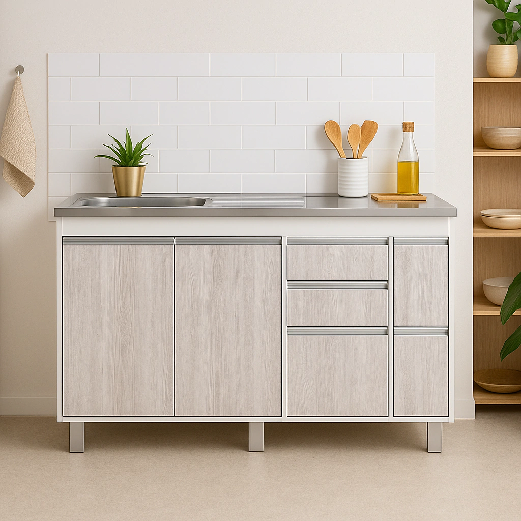 Importante: Este bajo mesada cuenta con 60 cm de profundidad, por lo que podés complementarlo con la mesada de 140x60 cm, la medida ideal para este modelo.