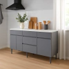 Bajo mesada de 160 cm 3 puertas 4 Cajones con diseño moderno y líneas rectas, ideal para renovar tu cocina con funcionalidad y estilo. Cuenta con tres cajones espaciosos y dos puertas que ofrecen una excelente capacidad de guardado para utensilios, vajilla o despensa.
