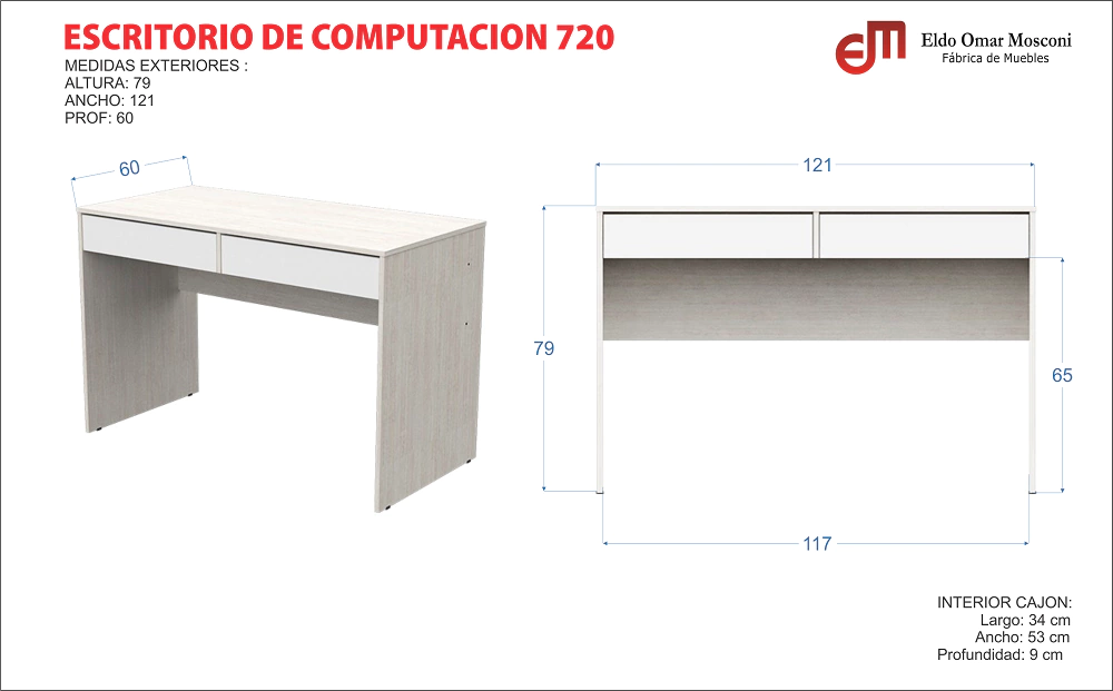 Material Principal: MDP 15 mm Revestimiento: Melamina Terminación: Lisa